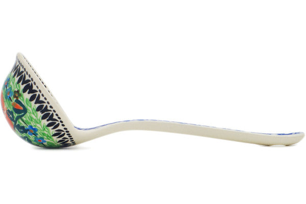 This Playful Poppy 9" Ladle was handmade and hand decorated in Boleslawiec, Poland by skilled artisans according to old traditional methods. This is a Polish pottery Signature Unikat, which means that it has been hand painted with both sponges and brushes and it is signed by the artist who painted it. Unikat pieces are the most intricate works of art. Larger Unikat items take hours of very careful work to finish. This Polish stoneware is microwave, dishwasher, freezer, and oven safe up to 480°F. It does not contain lead or cadmium. It is part of the Playful Poppy Collection.