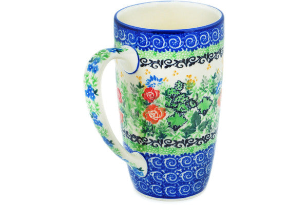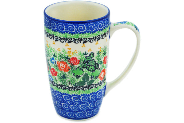 This Home Sweet Home 14 oz Latte Mug was handmade and hand decorated in Boleslawiec, Poland by skilled artisans according to old traditional methods. This is a Polish pottery Signature Unikat, which means that it has been hand painted with both sponges and brushes and it is signed by the artist who painted it. Unikat pieces are the most intricate works of art. Larger Unikat items take hours of very careful work to finish. This Polish stoneware is microwave, dishwasher, freezer, and oven safe up to 480°F. It does not contain lead or cadmium. It is part of the Home Sweet Home Collection.