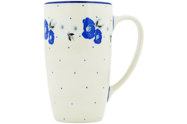 This Daisy Crown 14 oz Latte Mug was handmade and hand decorated in Boleslawiec, Poland by skilled artisans according to old traditional methods. This Polish stoneware is microwave, dishwasher, freezer, and oven safe up to 480°F. It does not contain lead or cadmium. It is part of the Daisy Crown Collection.