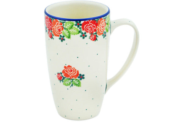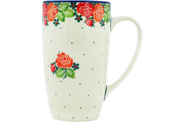 This In The Rose Garden 14 oz Latte Mug was handmade and hand decorated in Boleslawiec, Poland by skilled artisans according to old traditional methods. This Polish stoneware is microwave, dishwasher, freezer, and oven safe up to 480°F. It does not contain lead or cadmium. It is part of the In The Rose Garden Collection.