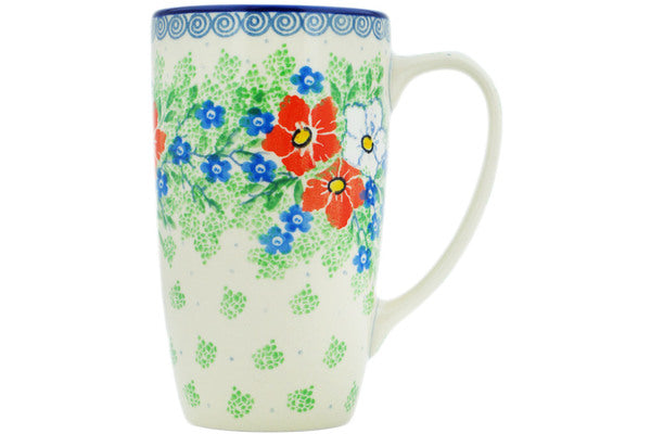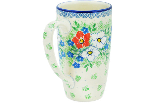 This Lovely Hibiscus 14 oz Latte Mug was handmade and hand decorated in Boleslawiec, Poland by skilled artisans according to old traditional methods. This is a Polish pottery Signature Unikat, which means that it has been hand painted with both sponges and brushes and it is signed by the artist who painted it. Unikat pieces are the most intricate works of art. Larger Unikat items take hours of very careful work to finish. This Polish stoneware is microwave, dishwasher, freezer, and oven safe up to 480°F. It does not contain lead or cadmium. It is part of the Lovely Hibiscus Collection.
