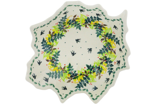 Leaf Shaped Bowl 9" Sunny Swallow Theme UNIKAT