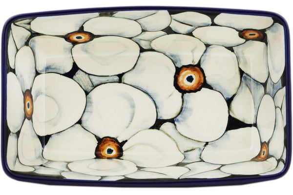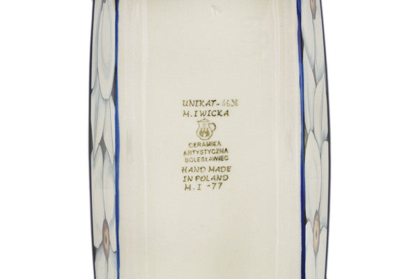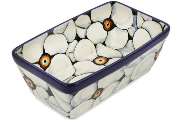 This Looking Poppy 8" Loaf Pan 8" was handmade and hand decorated in Boleslawiec, Poland by skilled artisans according to old traditional methods. This is a Polish pottery Signature Unikat, which means that it has been hand painted with both sponges and brushes and it is signed by the artist who painted it. Unikat pieces are the most intricate works of art. Larger Unikat items take hours of very careful work to finish. This Polish stoneware is microwave, dishwasher, freezer, and oven safe up to 480°F. It does not contain lead or cadmium. It is part of the Looking Poppy Collection.