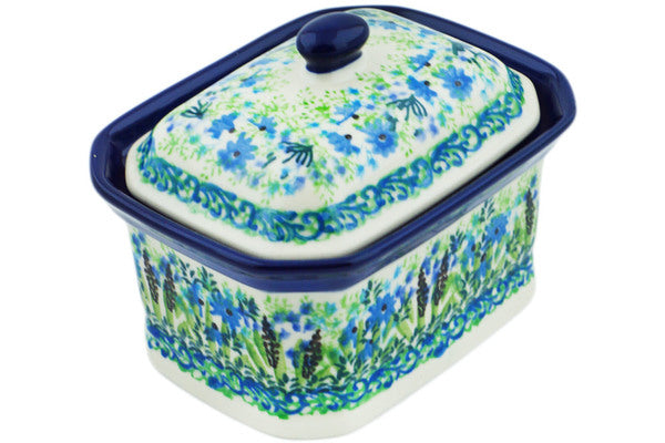 This Lavender Meadow 4" Mini Cake Box 4", Salt Box, was handmade and hand decorated in Boleslawiec, Poland by skilled artisans according to old traditional methods. This is a Polish pottery Signature Unikat, which means that it has been hand painted with both sponges and brushes and it is signed by the artist who painted it. Unikat pieces are the most intricate works of art. Larger Unikat items take hours of very careful work to finish. This Polish stoneware is microwave, dishwasher, freezer, and oven safe up to 480°F. It does not contain lead or cadmium. It is part of the Lavender Meadow Collection.