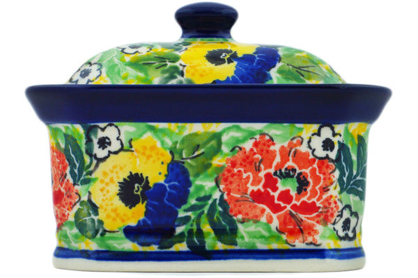 This Breathtaking 4" Mini Cake Box 4", Salt Box, was handmade and hand decorated in Boleslawiec, Poland by skilled artisans according to old traditional methods. This is a Polish pottery Signature Unikat, which means that it has been hand painted with both sponges and brushes and it is signed by the artist who painted it. Unikat pieces are the most intricate works of art. Larger Unikat items take hours of very careful work to finish. This Polish stoneware is microwave, dishwasher, freezer, and oven safe up to 480°F. It does not contain lead or cadmium. It is part of the Breathtaking Collection.