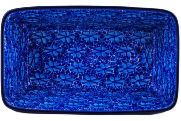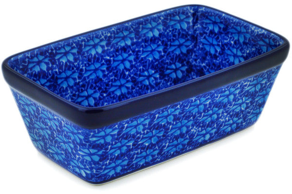 This Deep Into The Blue Sea 6" Mini loaf pan was handmade and hand decorated in Boleslawiec, Poland by skilled artisans according to old traditional methods. This Polish stoneware is microwave, dishwasher, freezer, and oven safe up to 480°F. It does not contain lead or cadmium. It is part of the Deep Into The Blue Sea Collection.