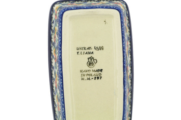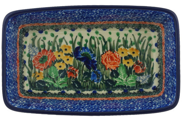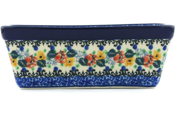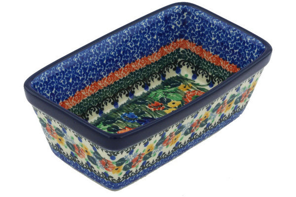 This Wild Garden 6" Mini loaf pan was handmade and hand decorated in Boleslawiec, Poland by skilled artisans according to old traditional methods. This is a Polish pottery Signature Unikat, which means that it has been hand painted with both sponges and brushes and it is signed by the artist who painted it. Unikat pieces are the most intricate works of art. Larger Unikat items take hours of very careful work to finish. This Polish stoneware is microwave, dishwasher, freezer, and oven safe up to 480°F. It does not contain lead or cadmium. It is part of the Wild Garden Collection.