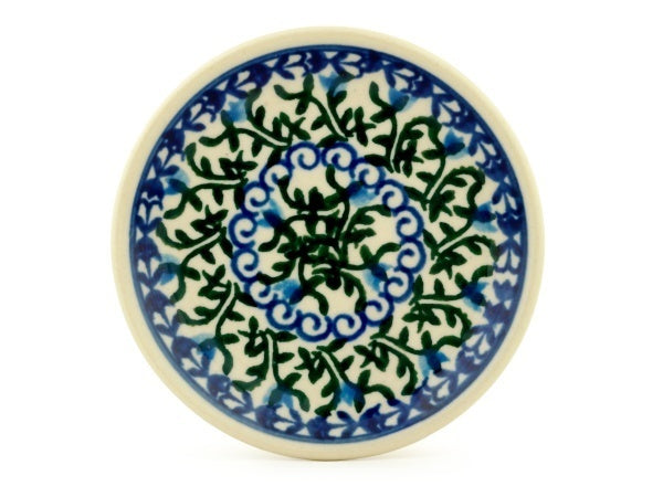 This Blue Ivy 4" Mini Plate, Coaster plate was handmade and hand decorated in Boleslawiec, Poland by skilled artisans according to old traditional methods. This Polish stoneware is microwave, dishwasher, freezer, and oven safe up to 480°F. It does not contain lead or cadmium. It is part of the Blue Ivy Collection.