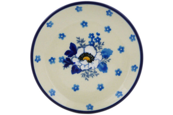 This Blue Spring 4" Mini Plate, Coaster plate was handmade and hand decorated in Boleslawiec, Poland by skilled artisans according to old traditional methods. This Polish stoneware is microwave, dishwasher, freezer, and oven safe up to 480°F. It does not contain lead or cadmium. It is part of the Blue Spring Collection.
