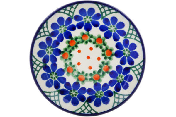 This Primrose Trellis 4" Mini Plate, Coaster plate was handmade and hand decorated in Boleslawiec, Poland by skilled artisans according to old traditional methods. This Polish stoneware is microwave, dishwasher, freezer, and oven safe up to 480°F. It does not contain lead or cadmium. It is part of the Primrose Trellis Collection.