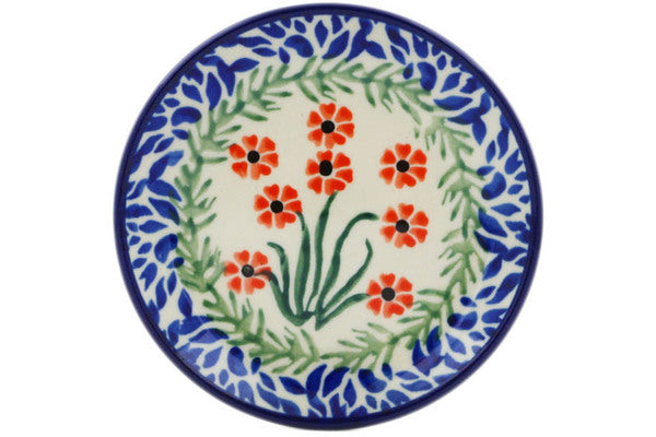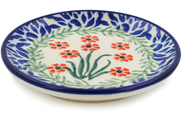 This Red April Showers 4" Mini Plate, Coaster plate was handmade and hand decorated in Boleslawiec, Poland by skilled artisans according to old traditional methods. This Polish stoneware is microwave, dishwasher, freezer, and oven safe up to 480°F. It does not contain lead or cadmium. It is part of the Red April Showers Collection.