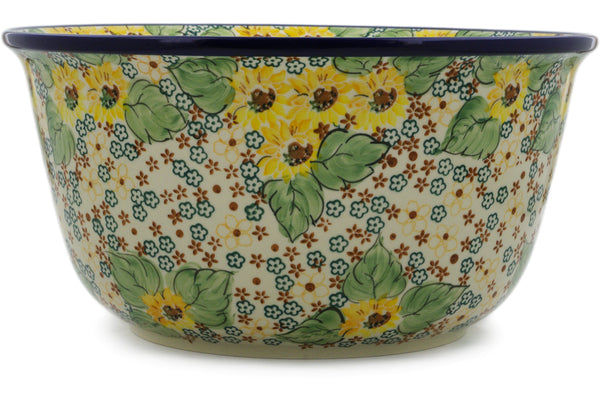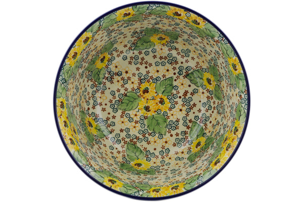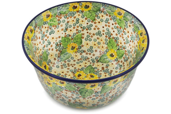 This Country Sunflower 12-inch (8 quarts) Mixing Bowl was handmade and hand decorated in Boleslawiec, Poland by skilled artisans according to old traditional methods. This is a Polish pottery Signature Unikat, which means that it has been hand painted with both sponges and brushes and it is signed by the artist who painted it. Unikat pieces are the most intricate works of art. Larger Unikat items take hours of very careful work to finish. This Polish stoneware is microwave, dishwasher, freezer, and oven safe up to 480°F. It does not contain lead or cadmium. It is part of the Country Sunflower Collection.