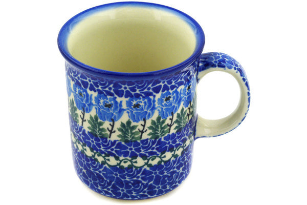This Blue Rosette Wreath 10 oz Mug was handmade and hand decorated in Boleslawiec, Poland by skilled artisans according to old traditional methods. This Polish stoneware is microwave, dishwasher, freezer, and oven safe up to 480°F. It does not contain lead or cadmium. It is part of the Blue Rosette Wreath Collection.