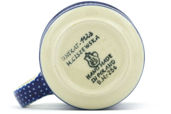 This Starry Night 10 oz Mug was handmade and hand decorated in Boleslawiec, Poland by skilled artisans according to old traditional methods. This is a Polish pottery Signature Unikat, which means that it has been hand painted with both sponges and brushes and it is signed by the artist who painted it. Unikat pieces are the most intricate works of art. Larger Unikat items take hours of very careful work to finish. This Polish stoneware is microwave, dishwasher, freezer, and oven safe up to 480°F. It does not contain lead or cadmium. It is part of the Starry Night Collection.