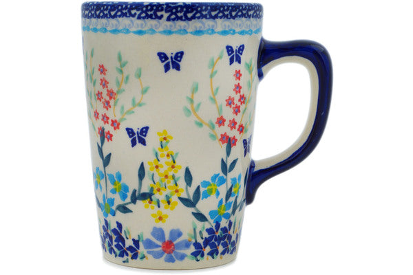 This Breathtaking Butterflies 11 oz Mug was handmade and hand decorated in Boleslawiec, Poland by skilled artisans according to old traditional methods. This is a Polish pottery Signature Unikat, which means that it has been hand painted with both sponges and brushes and it is signed by the artist who painted it. Unikat pieces are the most intricate works of art. Larger Unikat items take hours of very careful work to finish. This Polish stoneware is microwave, dishwasher, freezer, and oven safe up to 480°F. It does not contain lead or cadmium. It is part of the Breathtaking Butterflies Collection.