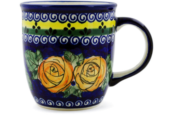 This Cabbage Roses 12 oz Mug was handmade and hand decorated in Boleslawiec, Poland by skilled artisans according to old traditional methods. This Polish stoneware is microwave, dishwasher, freezer, and oven safe up to 480°F. It does not contain lead or cadmium. It is part of the Cabbage Roses Collection.