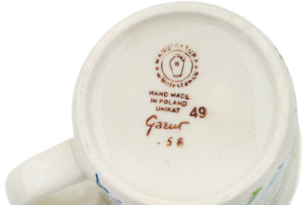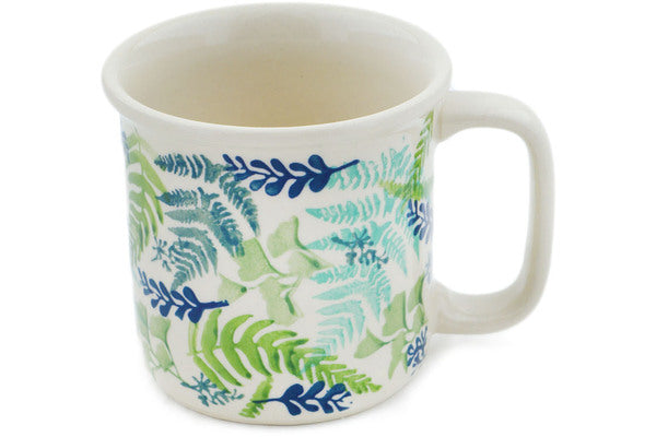 This Fern Frenzy 12 oz Mug was handmade and hand decorated in Boleslawiec, Poland by skilled artisans according to old traditional methods. This is a Polish pottery Signature Unikat, which means that it has been hand painted with both sponges and brushes and it is signed by the artist who painted it. Unikat pieces are the most intricate works of art. Larger Unikat items take hours of very careful work to finish. This Polish stoneware is microwave, dishwasher, freezer, and oven safe up to 480°F. It does not contain lead or cadmium. It is part of the Fern Frenzy Collection.