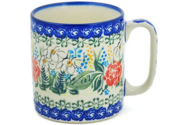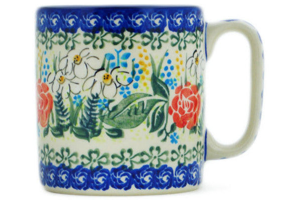 This Fresh Happiness 13 oz Mug was handmade and hand decorated in Boleslawiec, Poland by skilled artisans according to old traditional methods. This is a Polish pottery Signature Unikat, which means that it has been hand painted with both sponges and brushes and it is signed by the artist who painted it. Unikat pieces are the most intricate works of art. Larger Unikat items take hours of very careful work to finish. This Polish stoneware is microwave, dishwasher, freezer, and oven safe up to 480°F. It does not contain lead or cadmium. It is part of the Fresh Happiness Collection.