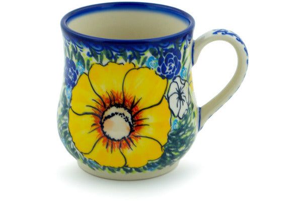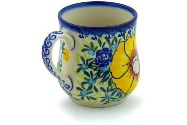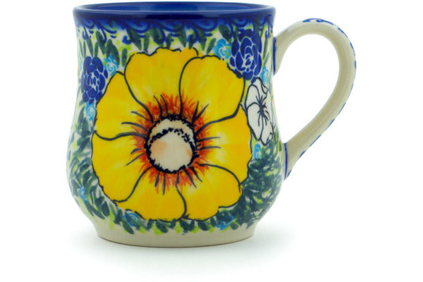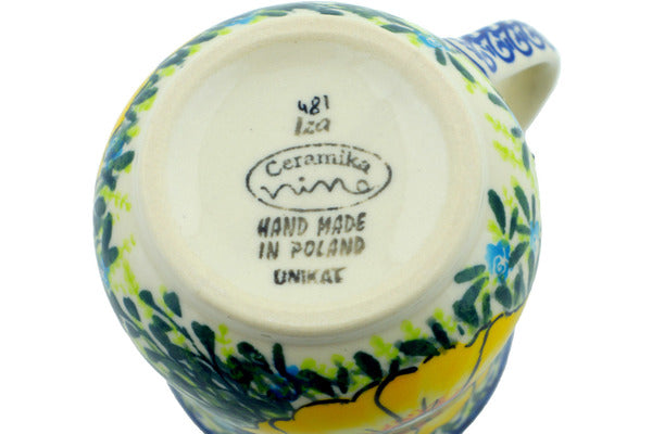 This Bright Blooms 13 oz Mug was handmade and hand decorated in Boleslawiec, Poland by skilled artisans according to old traditional methods. This is a Polish pottery Signature Unikat, which means that it has been hand painted with both sponges and brushes and it is signed by the artist who painted it. Unikat pieces are the most intricate works of art. Larger Unikat items take hours of very careful work to finish. This Polish stoneware is microwave, dishwasher, freezer, and oven safe up to 480°F. It does not contain lead or cadmium. It is part of the Bright Blooms Collection.