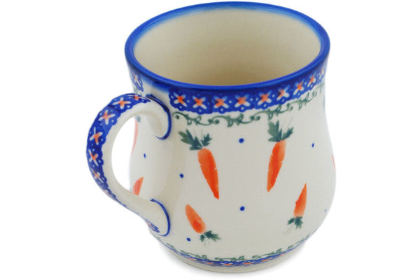 This Carrot Delight 13 oz Mug was handmade and hand decorated in Boleslawiec, Poland by skilled artisans according to old traditional methods. This Polish stoneware is microwave, dishwasher, freezer, and oven safe up to 480°F. It does not contain lead or cadmium. It is part of the Carrot Delight Collection.