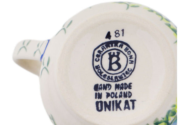 This Gorgeous Morning Glory 13 oz Mug was handmade and hand decorated in Boleslawiec, Poland by skilled artisans according to old traditional methods. This is a Polish pottery Signature Unikat, which means that it has been hand painted with both sponges and brushes and it is signed by the artist who painted it. Unikat pieces are the most intricate works of art. Larger Unikat items take hours of very careful work to finish. This Polish stoneware is microwave, dishwasher, freezer, and oven safe up to 480°F. It does not contain lead or cadmium. It is part of the Gorgeous Morning Glory Collection.