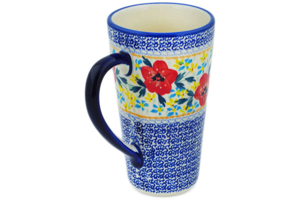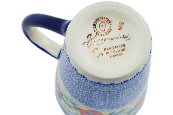 This Rainbow Field 13 oz Mug was handmade and hand decorated in Boleslawiec, Poland by skilled artisans according to old traditional methods. This is a Polish pottery Signature Unikat, which means that it has been hand painted with both sponges and brushes and it is signed by the artist who painted it. Unikat pieces are the most intricate works of art. Larger Unikat items take hours of very careful work to finish. This Polish stoneware is microwave, dishwasher, freezer, and oven safe up to 480°F. It does not contain lead or cadmium. It is part of the Rainbow Field Collection.