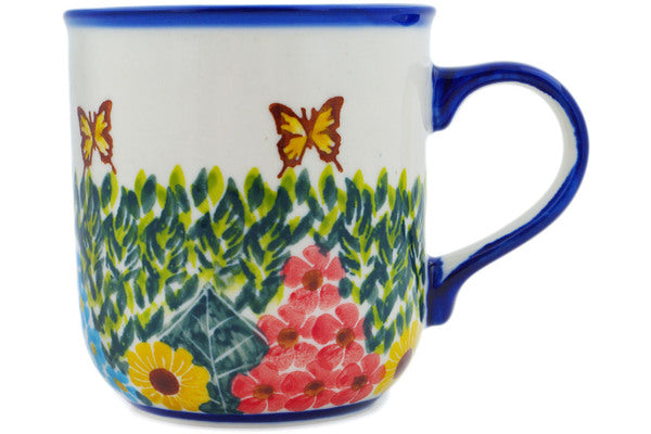 This Sweet Butterflies 13 oz Mug was handmade and hand decorated in Boleslawiec, Poland by skilled artisans according to old traditional methods. This Polish stoneware is microwave, dishwasher, freezer, and oven safe up to 480°F. It does not contain lead or cadmium. It is part of the Sweet Butterflies Collection.