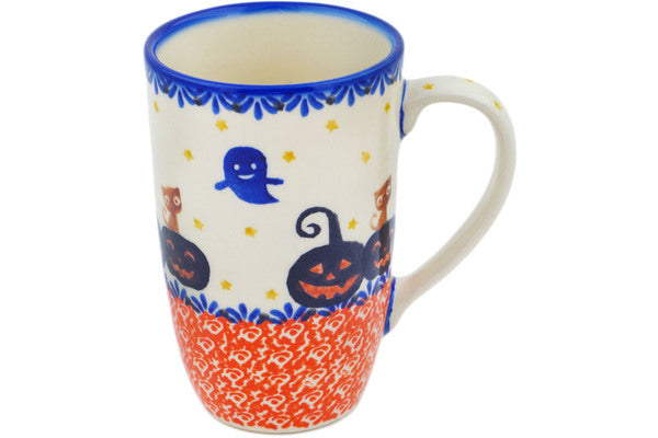This Jack-O-Lantern Fun 14 oz Mug was handmade and hand decorated in Boleslawiec, Poland by skilled artisans according to old traditional methods. This Polish stoneware is microwave, dishwasher, freezer, and oven safe up to 480°F. It does not contain lead or cadmium. It is part of the Jack-O-Lantern Fun Collection.