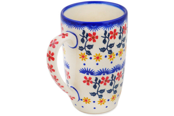 This Red Sunflower 14 oz Mug was handmade and hand decorated in Boleslawiec, Poland by skilled artisans according to old traditional methods. This Polish stoneware is microwave, dishwasher, freezer, and oven safe up to 480°F. It does not contain lead or cadmium. It is part of the Red Sunflower Collection.