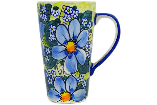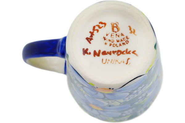 This Beautiful Dream 15 oz Mug was handmade and hand decorated in Boleslawiec, Poland by skilled artisans according to old traditional methods. This is a Polish pottery Signature Unikat, which means that it has been hand painted with both sponges and brushes and it is signed by the artist who painted it. Unikat pieces are the most intricate works of art. Larger Unikat items take hours of very careful work to finish. This Polish stoneware is microwave, dishwasher, freezer, and oven safe up to 480°F. It does not contain lead or cadmium. It is part of the Beautiful Dream Collection.