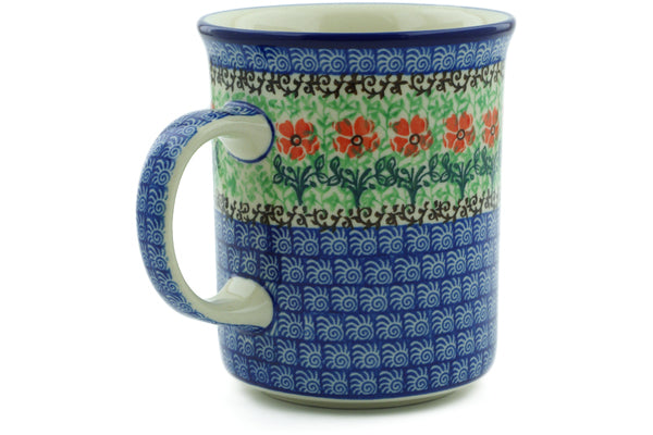 This Maraschino 20 oz Mug was handmade and hand decorated in Boleslawiec, Poland by skilled artisans according to old traditional methods. This Polish stoneware is microwave, dishwasher, freezer, and oven safe up to 480°F. It does not contain lead or cadmium. It is part of the Maraschino Collection.