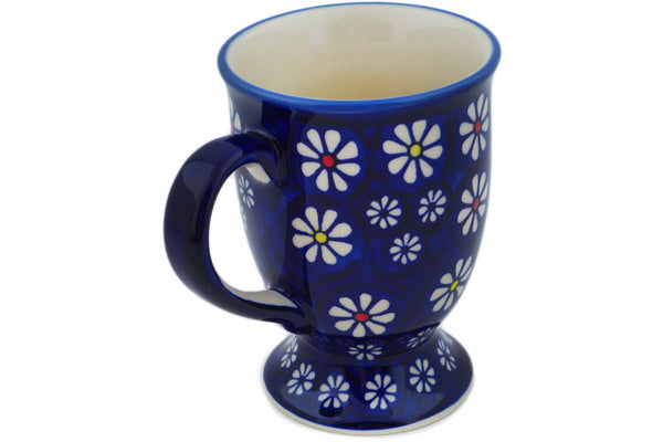 This Daisy Jazz 7 oz Mug was handmade and hand decorated in Boleslawiec, Poland by skilled artisans according to old traditional methods. This is a Polish pottery Signature Unikat, which means that it has been hand painted with both sponges and brushes and it is signed by the artist who painted it. Unikat pieces are the most intricate works of art. Larger Unikat items take hours of very careful work to finish. This Polish stoneware is microwave, dishwasher, freezer, and oven safe up to 480°F. It does not contain lead or cadmium. It is part of the Daisy Jazz Collection.