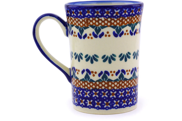 This Blue Cress 8 oz Mug was handmade and hand decorated in Boleslawiec, Poland by skilled artisans according to old traditional methods. This is a Polish pottery Signature Unikat, which means that it has been hand painted with both sponges and brushes and it is signed by the artist who painted it. Unikat pieces are the most intricate works of art. Larger Unikat items take hours of very careful work to finish. This Polish stoneware is microwave, dishwasher, freezer, and oven safe up to 480°F. It does not contain lead or cadmium. It is part of the Blue Cress Collection.