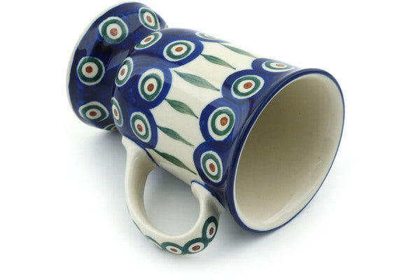 This Peacock Leaves 8 oz Mug was handmade and hand decorated in Boleslawiec, Poland by skilled artisans according to old traditional methods. This Polish stoneware is microwave, dishwasher, freezer, and oven safe up to 480°F. It does not contain lead or cadmium. It is part of the Peacock Leaves Collection.