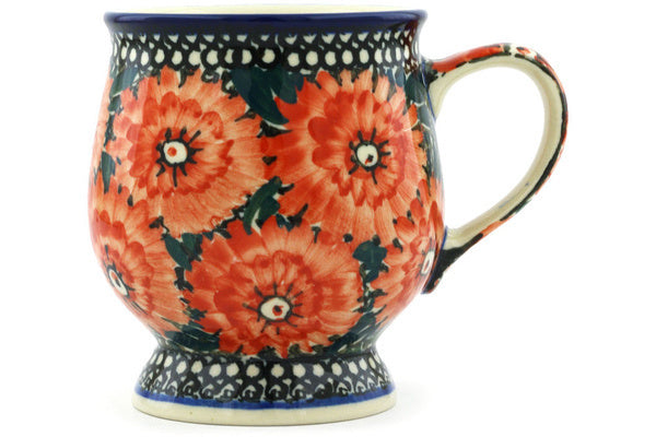 This Temptation 8 oz Mug was handmade and hand decorated in Boleslawiec, Poland by skilled artisans according to old traditional methods. This is a Polish pottery Signature Unikat, which means that it has been hand painted with both sponges and brushes and it is signed by the artist who painted it. Unikat pieces are the most intricate works of art. Larger Unikat items take hours of very careful work to finish. This Polish stoneware is microwave, dishwasher, freezer, and oven safe up to 480°F. It does not contain lead or cadmium. It is part of the Temptation Collection.