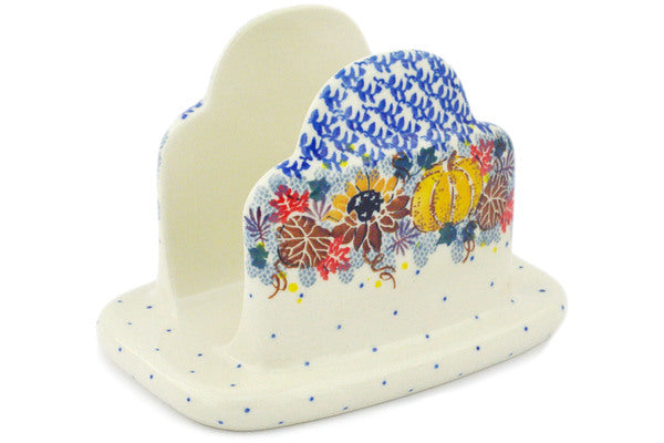 This Autumn Falling Leaves 7" Napkin Holder was handmade and hand decorated in Boleslawiec, Poland by skilled artisans according to old traditional methods. This is a Polish pottery Signature Unikat, which means that it has been hand painted with both sponges and brushes and it is signed by the artist who painted it. Unikat pieces are the most intricate works of art. Larger Unikat items take hours of very careful work to finish. This Polish stoneware is microwave, dishwasher, freezer, and oven safe up to 480°F. It does not contain lead or cadmium. It is part of the Autumn Falling Leaves Collection.