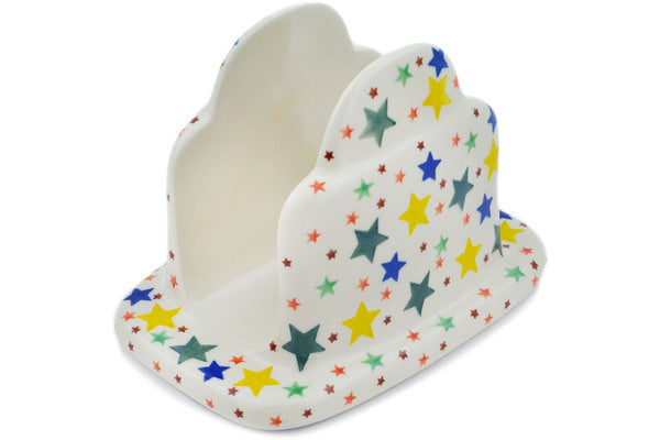 This Confetti Stars 7" Napkin Holder was handmade and hand decorated in Boleslawiec, Poland by skilled artisans according to old traditional methods. This Polish stoneware is microwave, dishwasher, freezer, and oven safe up to 480°F. It does not contain lead or cadmium. It is part of the Confetti Stars Collection.