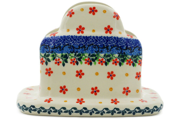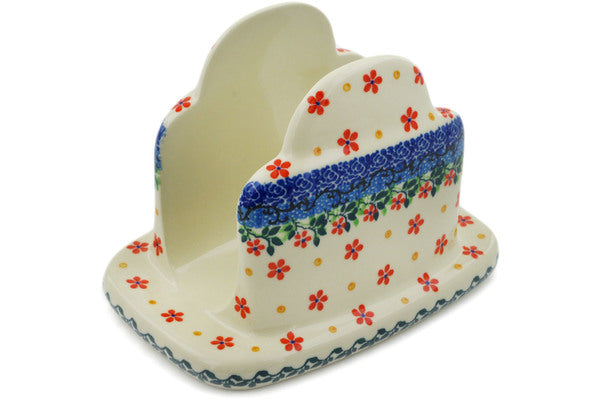 This Little Flowers 7" Napkin Holder was handmade and hand decorated in Boleslawiec, Poland by skilled artisans according to old traditional methods. This Polish stoneware is microwave, dishwasher, freezer, and oven safe up to 480°F. It does not contain lead or cadmium. It is part of the Little Flowers Collection.