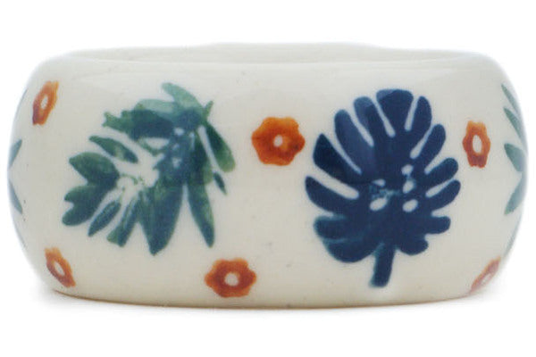 This Pineapple Parade 2" Napkin Ring was handmade and hand decorated in Boleslawiec, Poland by skilled artisans according to old traditional methods. This Polish stoneware is microwave, dishwasher, freezer, and oven safe up to 480°F. It does not contain lead or cadmium. It is part of the Pineapple Parade Collection.