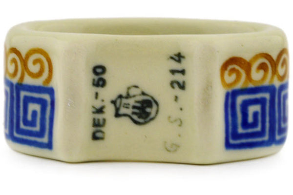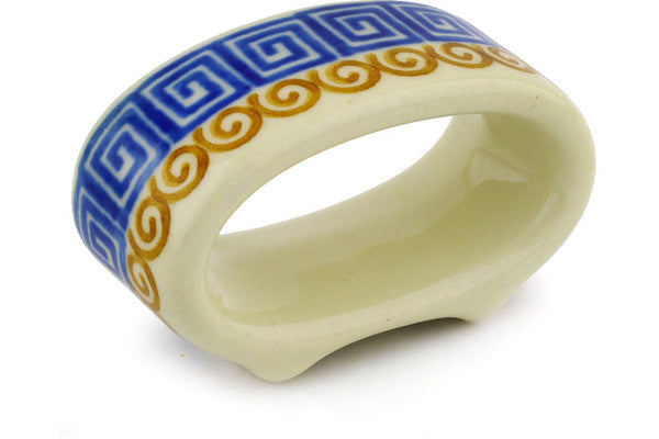 This Grecian Sea 3" Napkin Ring was handmade and hand decorated in Boleslawiec, Poland by skilled artisans according to old traditional methods. This Polish stoneware is microwave, dishwasher, freezer, and oven safe up to 480°F. It does not contain lead or cadmium. It is part of the Grecian Sea Collection.
