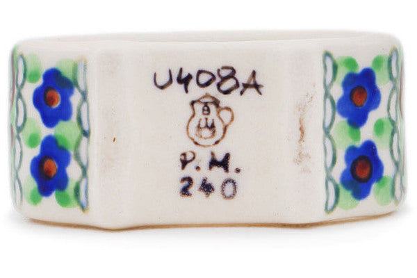 This Green Pansies 3" Napkin Ring was handmade and hand decorated in Boleslawiec, Poland by skilled artisans according to old traditional methods. This is a Polish pottery Signature Unikat, which means that it has been hand painted with both sponges and brushes and it is signed by the artist who painted it. Unikat pieces are the most intricate works of art. Larger Unikat items take hours of very careful work to finish. This Polish stoneware is microwave, dishwasher, freezer, and oven safe up to 480°F. It does not contain lead or cadmium. It is part of the Green Pansies Collection.
