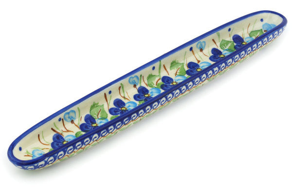 This Blue Pansy 13" Olive Dish was handmade and hand decorated in Boleslawiec, Poland by skilled artisans according to old traditional methods. This Polish stoneware is microwave, dishwasher, freezer, and oven safe up to 480°F. It does not contain lead or cadmium. It is part of the Blue Pansy Collection.
