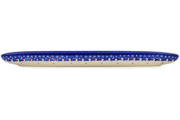 This Cardinal's Home 13" Olive Dish was handmade and hand decorated in Boleslawiec, Poland by skilled artisans according to old traditional methods. This is a Polish pottery Signature Unikat, which means that it has been hand painted with both sponges and brushes and it is signed by the artist who painted it. Unikat pieces are the most intricate works of art. Larger Unikat items take hours of very careful work to finish. This Polish stoneware is microwave, dishwasher, freezer, and oven safe up to 480°F. It does not contain lead or cadmium. It is part of the Cardinal's Home Collection.