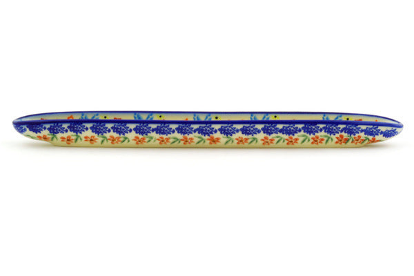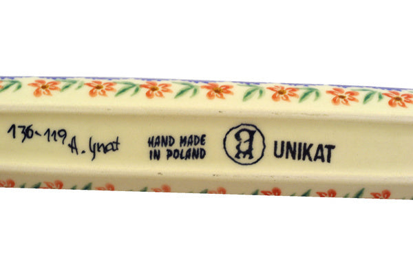 This Fanciful Ladybug 13" Olive Dish was handmade and hand decorated in Boleslawiec, Poland by skilled artisans according to old traditional methods. This Polish stoneware is microwave, dishwasher, freezer, and oven safe up to 480°F. It does not contain lead or cadmium. It is part of the Fanciful Ladybug Collection.