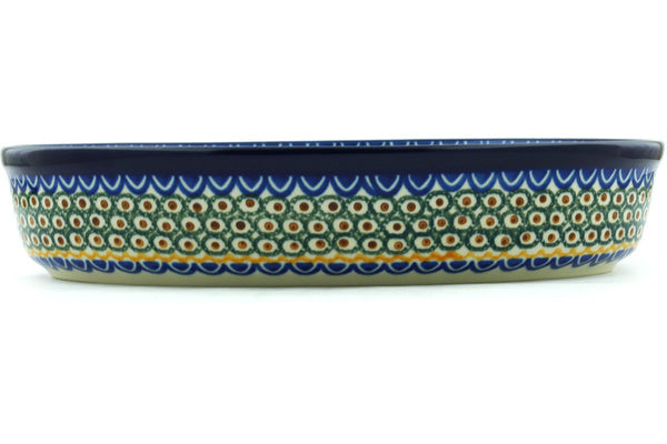 This August Sunflowers 12" Oval Baker was handmade and hand decorated in Boleslawiec, Poland by skilled artisans according to old traditional methods. This is a Polish pottery Signature Unikat, which means that it has been hand painted with both sponges and brushes and it is signed by the artist who painted it. Unikat pieces are the most intricate works of art. Larger Unikat items take hours of very careful work to finish. This Polish stoneware is microwave, dishwasher, freezer, and oven safe up to 480°F. It does not contain lead or cadmium. It is part of the August Sunflowers Collection.