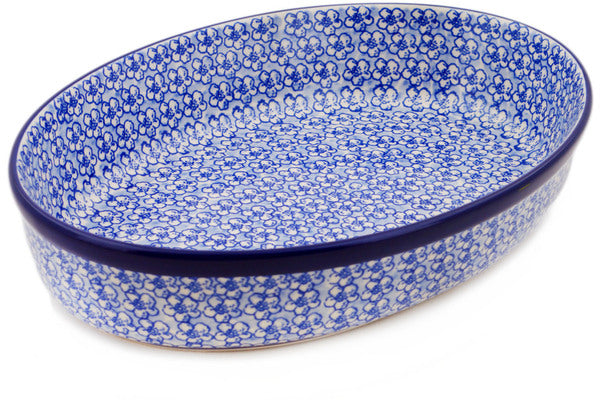 This Magical Blue 12" Oval Baker was handmade and hand decorated in Boleslawiec, Poland by skilled artisans according to old traditional methods. This Polish stoneware is microwave, dishwasher, freezer, and oven safe up to 480°F. It does not contain lead or cadmium. It is part of the Magical Blue Collection.