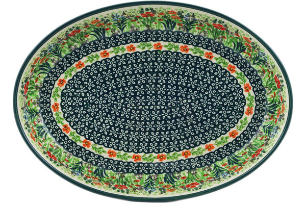 This Red Garden 12" Oval Baker was handmade and hand decorated in Boleslawiec, Poland by skilled artisans according to old traditional methods. This is a Polish pottery Signature Unikat, which means that it has been hand painted with both sponges and brushes and it is signed by the artist who painted it. Unikat pieces are the most intricate works of art. Larger Unikat items take hours of very careful work to finish. This Polish stoneware is microwave, dishwasher, freezer, and oven safe up to 480°F. It does not contain lead or cadmium. It is part of the Red Garden Collection.