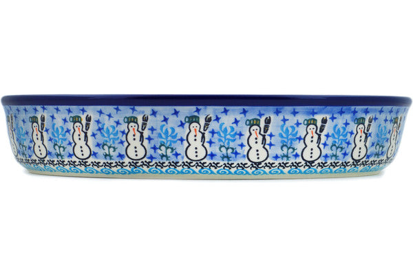 Home Oval Baker 14" Snowmen Circle Theme UNIKAT