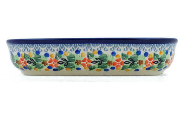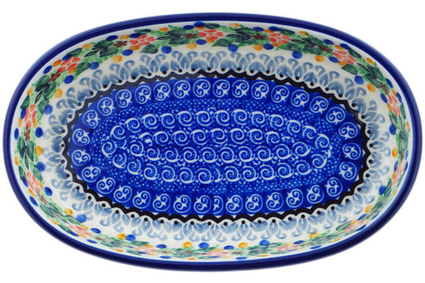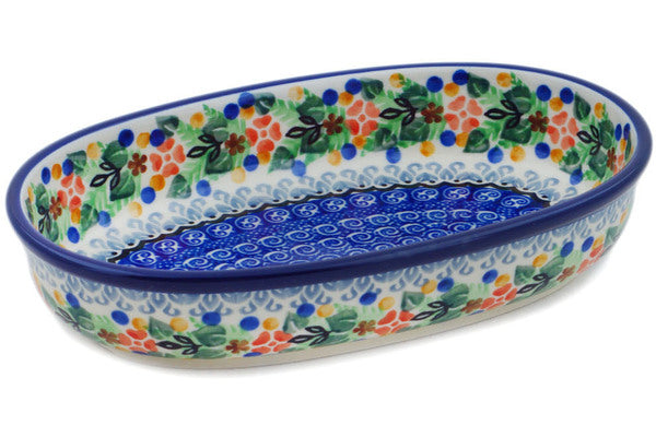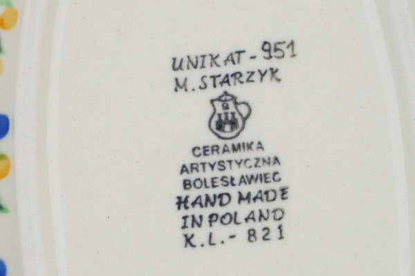 This Springtime Wreath 8" Oval Baker was handmade and hand decorated in Boleslawiec, Poland by skilled artisans according to old traditional methods. This is a Polish pottery Signature Unikat, which means that it has been hand painted with both sponges and brushes and it is signed by the artist who painted it. Unikat pieces are the most intricate works of art. Larger Unikat items take hours of very careful work to finish. This Polish stoneware is microwave, dishwasher, freezer, and oven safe up to 480°F. It does not contain lead or cadmium. It is part of the Springtime Wreath Collection.