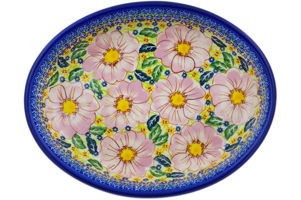 This Pink Delight 12" Oval Bowl was handmade and hand decorated in Boleslawiec, Poland by skilled artisans according to old traditional methods. This is a Polish pottery Signature Unikat, which means that it has been hand painted with both sponges and brushes and it is signed by the artist who painted it. Unikat pieces are the most intricate works of art. Larger Unikat items take hours of very careful work to finish. This Polish stoneware is microwave, dishwasher, freezer, and oven safe up to 480°F. It does not contain lead or cadmium. It is part of the Pink Delight Collection.
